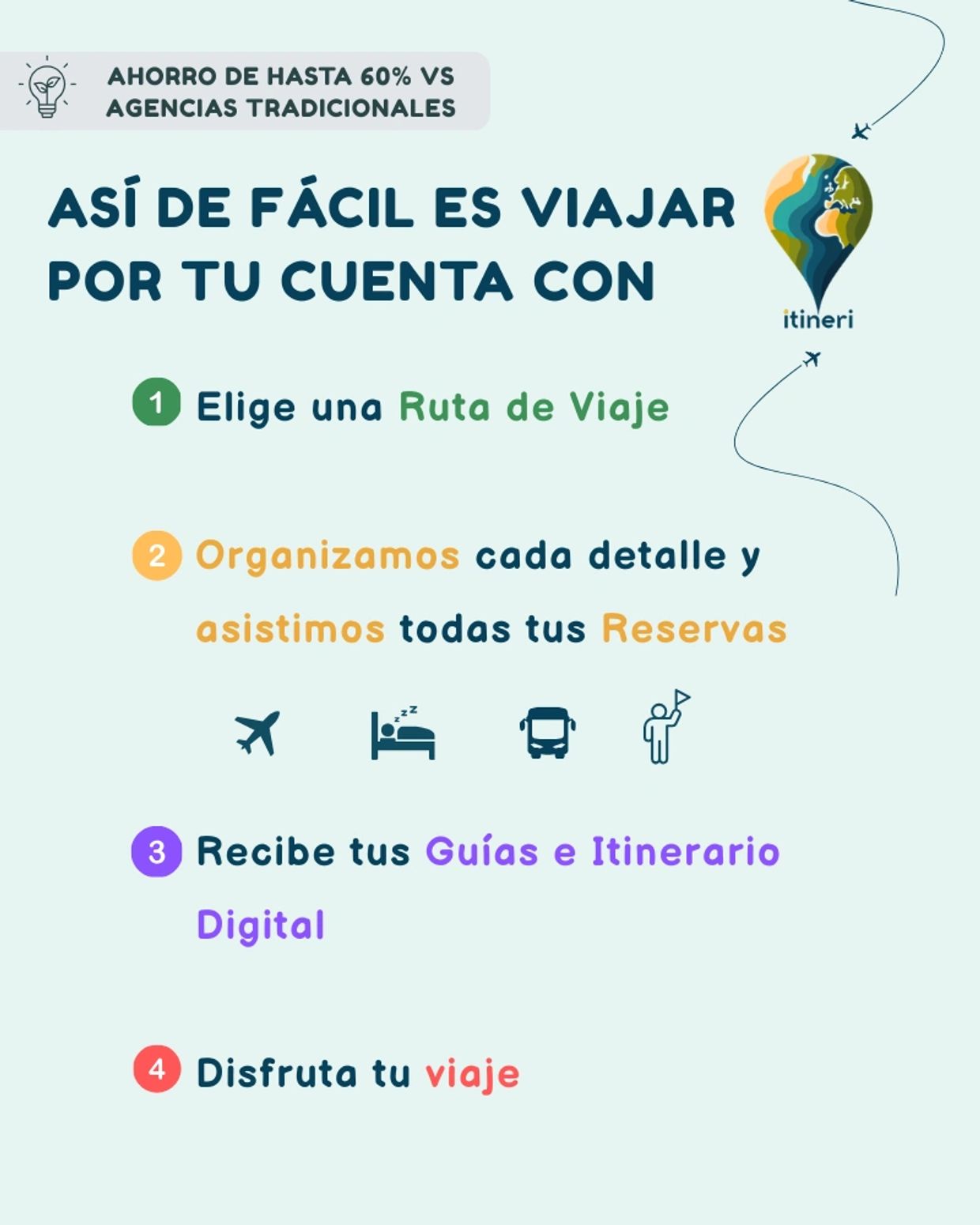 Viaja con un itinerario 100% personalizado, donde tú decides lo que visitas, a tu ritmo, con tu estilo de viaje y presupuesto. Nosotros lo diseñamos para optimizar tiempo y maximizar tu ahorro.